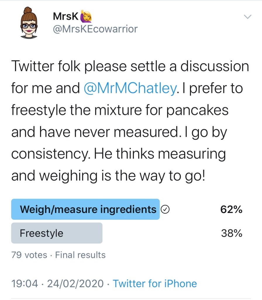 At least once in one part of the day or another, I can guarantee that someone will make me laugh and lift my mood. Sometimes it’s a random passing comment and sometimes it’s something bigger. Takes this week for example. In my infinite wisdom (and significant sleep deprivation) I decided to cook pancakes in assembly. I was prepping at lunch time and the team having their lunch in the staff room couldn’t help but help out. And by help out, I mean make a joke out of the things I kept doing wrong. The scales not working, the cooker taking a week to heat up or the use by date of the sugar! To sum it all up, a ‘to measure or not to measure’ poll put up on twitter to settle our friendly debate. I can laugh about even more now knowing that I won!